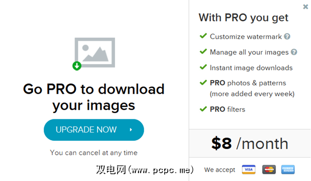 所以我们确定免费版几乎是免费版。太棒了,但是付费的呢?如果您是狂热的图像共享者或管理企业的社交网络,那么值得您花些时间。那么,您每月只需支付8美元,您会得到什么?