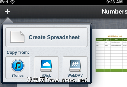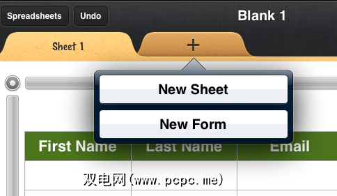 创建电子表格并将其链接到表单是相对而言的如果您已经知道如何在iOS设备上使用Numbers '09,则非常容易。但是,我假设您没有,并带领您完成基本过程。启动Numbers时,点击+按钮并选择Create Spreadsheet。