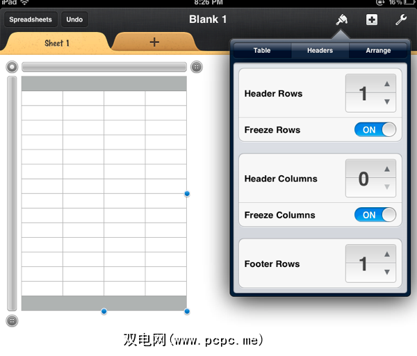现在点击手柄左上角的按钮,然后点击菜单栏中的“画笔"图标。选择标题。在标题列的地方,将该数字更改为0。在本教程中,我们不需要列标题。在显示“页脚行"的位置,将其更改为1。