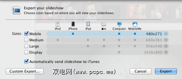 当您单击“播放"按钮时,iPhoto会显示在地图上移动的图形旅行效果。到拍照的地方。与其他幻灯片一样,您可以导出项目以在网站,移动设备或大屏幕电视上展示它。