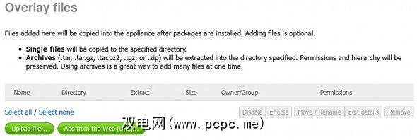 在“文件"中类别,您可以添加所需的任何覆盖文件。在安装所有软件包之后,将应用这些内容。