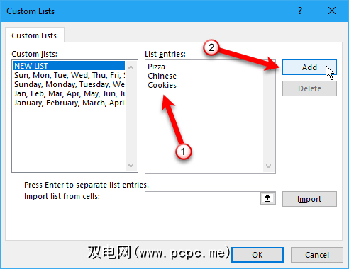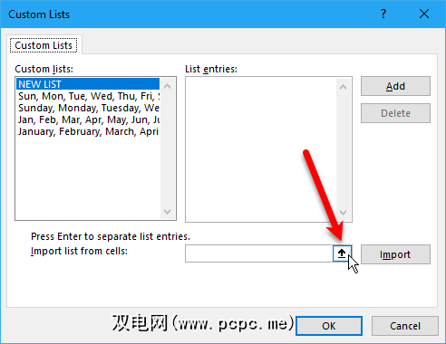 创建自定义列表的第二种方法是从一个工作表的单元格中导入它们。