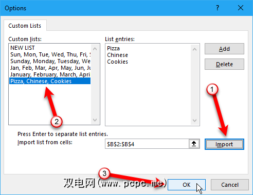 创建自定义列表的第三种方法是从命名的单元格区域导入列表。
