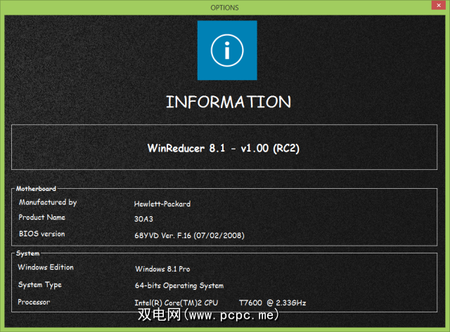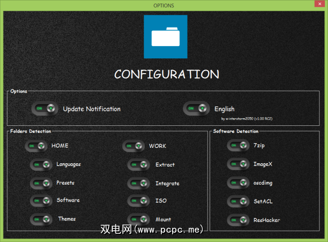 在“选项"下,您可以检查软件更新,返回到“配置"窗口并设置Windows主题。