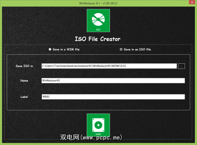 WinReducer将指导您到ISO文件创建器中,您可以在其中将自定义Windows安装介质另存为WIM或ISO文件。