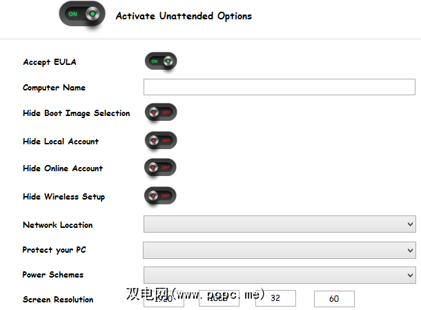 请不要忘记设置无人参与安装。请记住,如果添加序列号,则生成的ISO文件将设置到您的计算机上。尝试在另一台计算机上使用自定义Windows 8.1安装光盘将违反Windows许可协议,并且在激活Windows时会遇到问题。