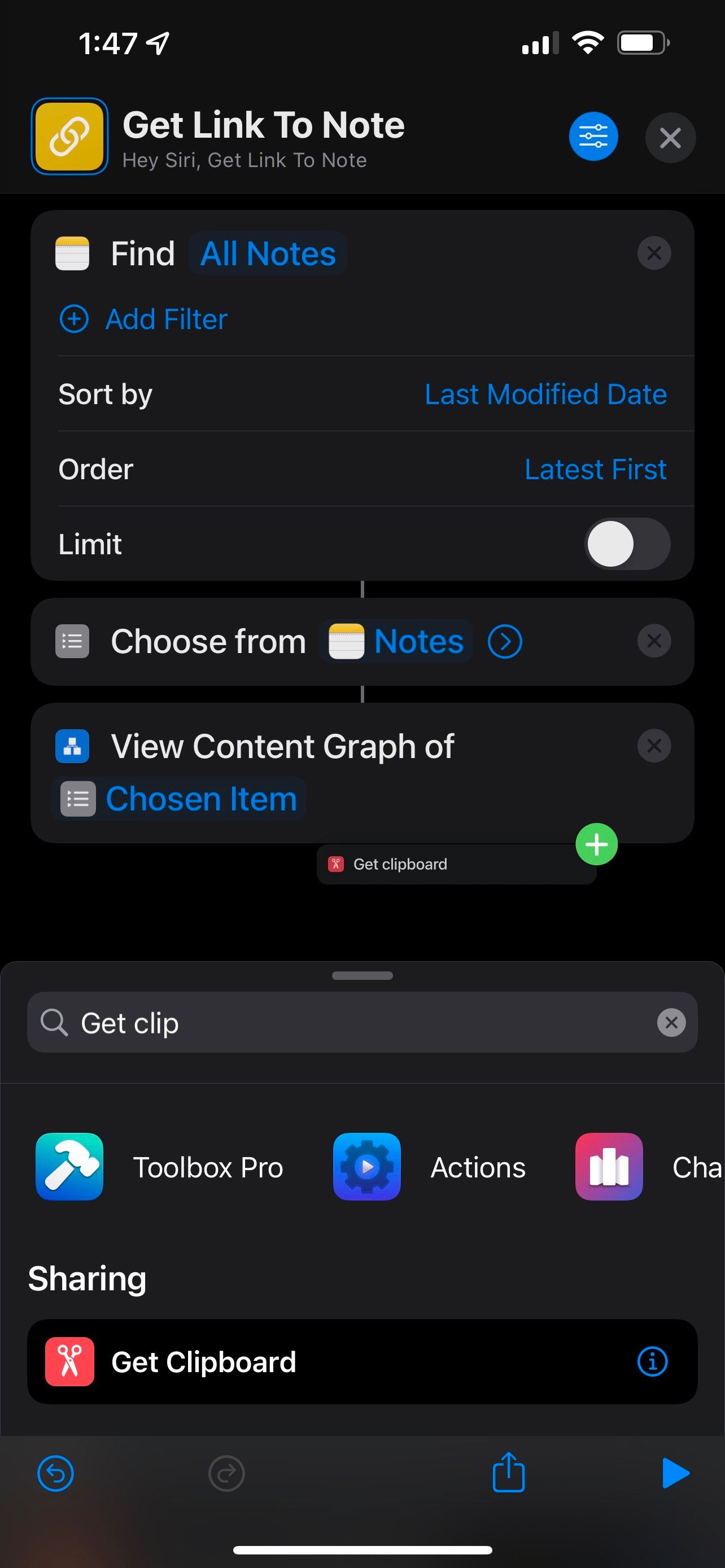 首先,您将使用快捷方式应用程序提取笔记的 URL 并将其作为富链接复制到剪贴板。然后,您只需将其粘贴到 Notes 应用程序中即可。