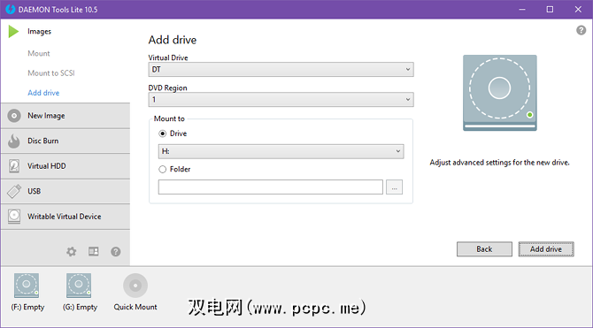 许多免费应用程序都可以为您虚拟安装光盘映像,包括我个人最喜欢的WinCDEmu。但是,由于我们使用DAEMON Tools Lite创建了光盘映像,因此我们也坚持使用它进行安装。这样,您只需要安装一件事即可。