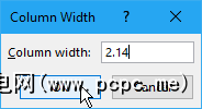 因此,在 Column Width 对话框的框中输入 2.14 并单击确定。