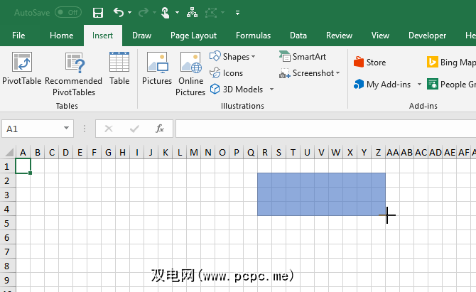 要创建网格,我们需要将所有列的宽度更改为等于默认行高。工作表将看起来像方格纸。
