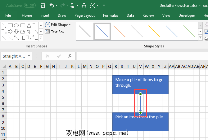 Excel有许多格式设置选项,此处介绍过多。但是,我们将向您展示一些基础知识,以便您可以设置形状,文本和连接线的格式。