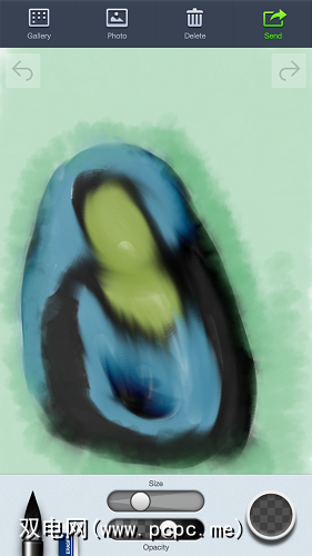 这感觉有点傻,因为您不必选择颜色或做任何真正的“工作":您只需将手指反复地放在屏幕上,就可以画画了。当然,您可以调整画笔的不透明度和大小设置,以使一些细节更好地显示,但是即使您不这样做,最终还是可以得到可识别的结果。这是我的: