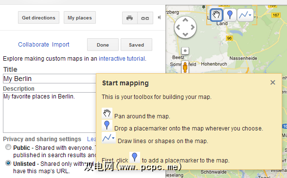 Google最近添加了用于制作自定义地图的交互式教程。本教程制作精良,因此,我不带我逐步介绍文本和屏幕截图,而是建议您按照此快速教程首次创建Google地图。请注意,如果您在编辑地图时意外关闭了所有教程窗口,则可以随时通过左侧菜单中的相应文本链接来重新启动教程。
