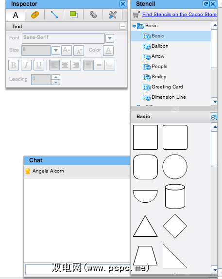 Cacoo拥有大量可供立即使用的模板。在任何画布的右侧,您都可以看到选择。在“基本"下,您可以看到人物,气球气泡,用于贺卡的图像,箭头,尺寸线等。 “办公室"部分具有各种办公设备,用于布置办公室平面图的鸟瞰办公室家具以及代表办公计算机网络上大多数节点的简单图像。在其他部分中,您将找到软件流程图,线框图像,代表iPhone和Android手机的图形以及电路模板。