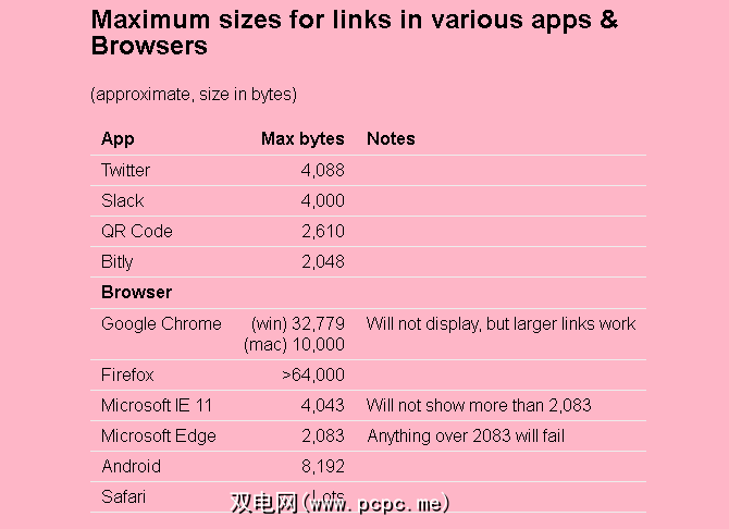 幸运的是,创建者已发布了许多流行平台可能使用的最大字节大小,解释不同平台可以容纳的大小:
