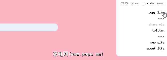 单击复制链接选项后,可以将该链接粘贴到浏览器中以进行查看网站。同样要注意的一点是:默认情况下,Itty Bitty网站可以通过QR码发送。