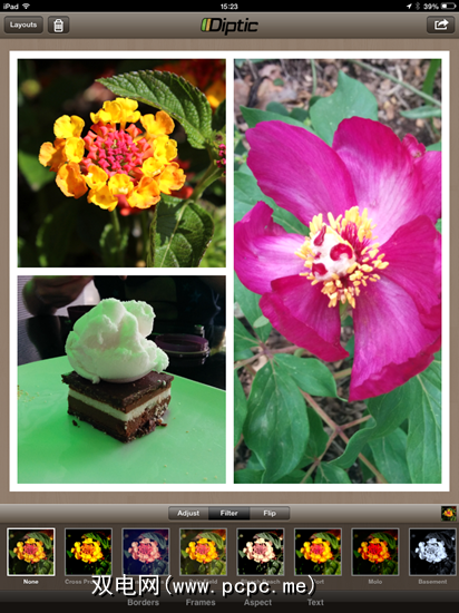 对于照片本身,您也可以使用可用的调整设置和滤镜进行编辑。与功能完善的照片编辑应用程序相比,这些功能非常基础,但它们足以满足您的Diptic需求。