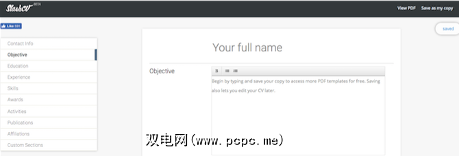 关于SlashCV的最好的事情之一是,您无需注册帐户就可以开始构建简历。这很简单,而且非常易于使用,尽管您不能选择其他模板或保存简历,除非您注册了一个帐户(免费)。
