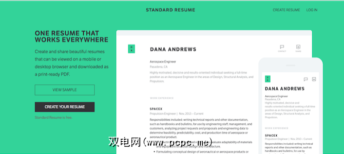 不要让这个名字骗了你。由Standard Resume创建的免费,响应式简历干净整洁,使您的内容可以畅所欲言。
