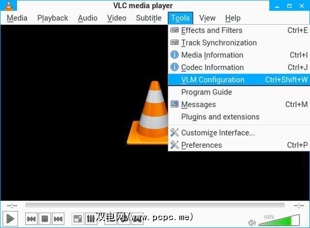 打开VLC并选择工具,然后是 VLM配置。