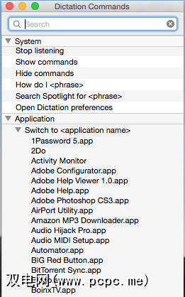 说“显示命令",然后弹出窗口将显示可用的语音命令,或过去称为口语项目。您还可以转到系统偏好设置>听写和语音>文本到语音>打开辅助功能偏好......>听写>听写命令... 来查看所有默认命令的列表。