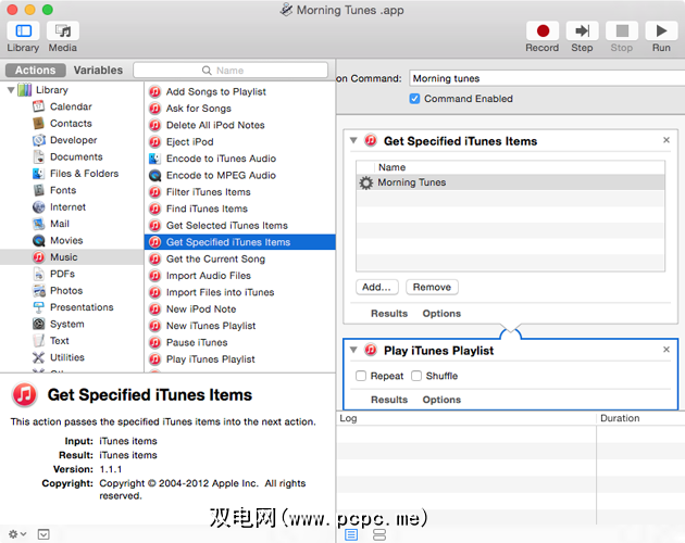 作为另一个示例,您可以创建另一个可发音的项目来播放iTunes中的选定播放列表。单击获取指定的iTunes项目操作中的添加按钮以输入播放列表。