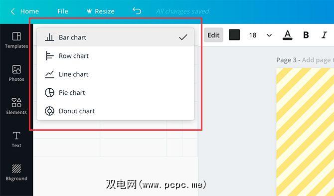 如果要更改所用图形的样式,请单击下拉菜单,然后选择另一个。 Canva将自动更改图形的外观,同时保持值不变。
