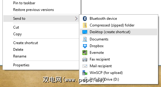如果您最终只是要将所有快捷方式都转储到桌面上,则可以节省几步,然后使用“发送"即可。