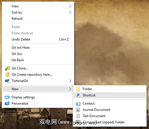 所有您需要做的就是右键单击一个开放空间,选择新建子菜单,然后选择快捷方式选项: