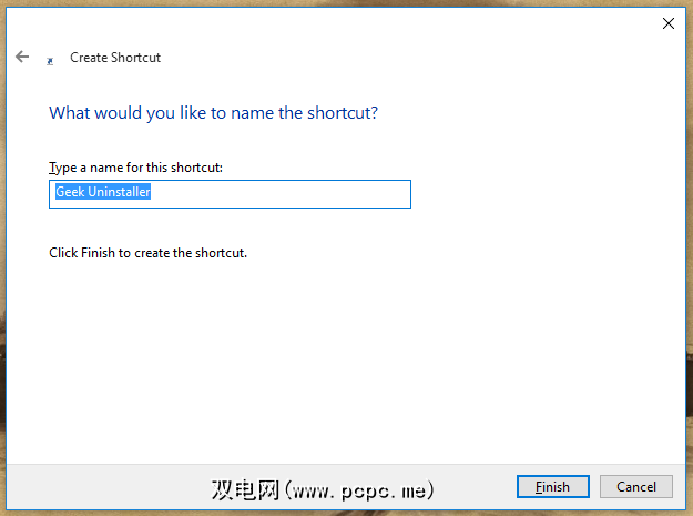 最后一步,随便命名快捷方式,但我们建议使用程序的全名: