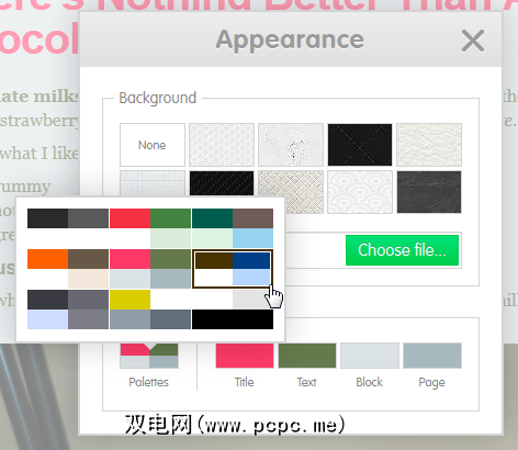 页面上的元素并非唯一您可以在CheckThis页面中控制的内容。单击画笔图标以更改页面的外观。您可以从提供的背景不同纹理中进行选择,也可以上传自己的图像。您还可以更改标题,文本和背景的颜色,或使用提供的调色板之一。