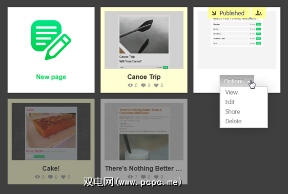 您还可以通过个人资料页面共享任何已发布的页面,以及查看,编辑和删除它们。