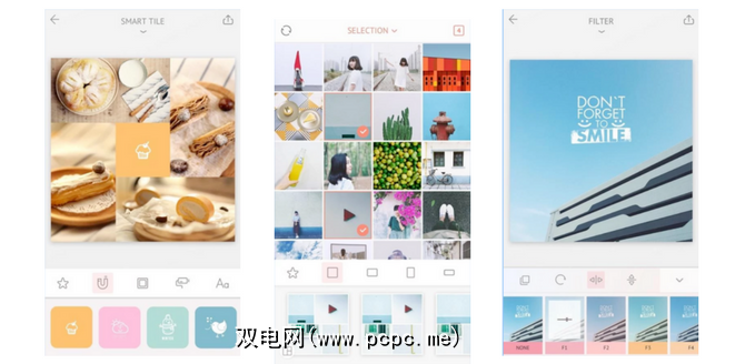 您可以选择添加小图像和文本,但是看起来并不特别。此处的主要功能是提供的拼贴模板选择。