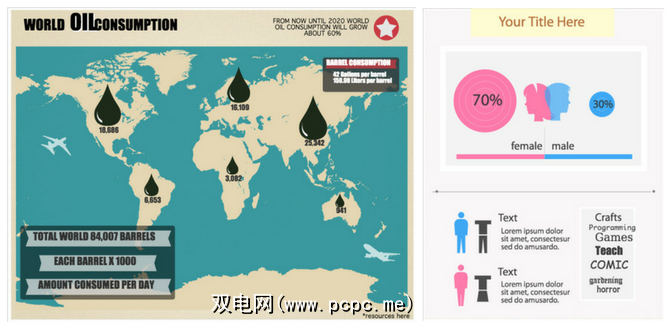 为创建出色的信息图表,强烈建议使用Easel.ly。作为免费用户,您可以访问许多易于自定义的信息图表模板和10种字体。如果您以每月3美元的价格升级到Easel.ly Pro帐户,您将获得大量的模板,50多种字体(以及上载自己的功能)和成千上万张图片。