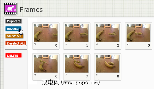 您可以在底部编辑图片的顺序或重复图片。您所做的更改将立即在上面的影片帧中更新。