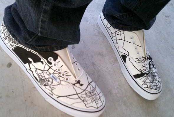 此服务创建的图像不仅很酷,而且还可能对创意工作很有用。在CityTracking博客上,您会找到这些定制运动鞋,上面印有地图: