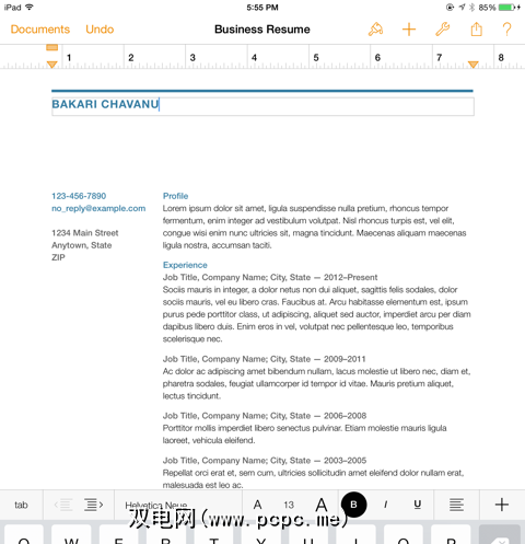 使用Pages的经验,使用它可能比Shine或Resume Builder Pro更具挑战性。但是,您为Pages支付的价格还为您提供了一个完整的文字处理器。