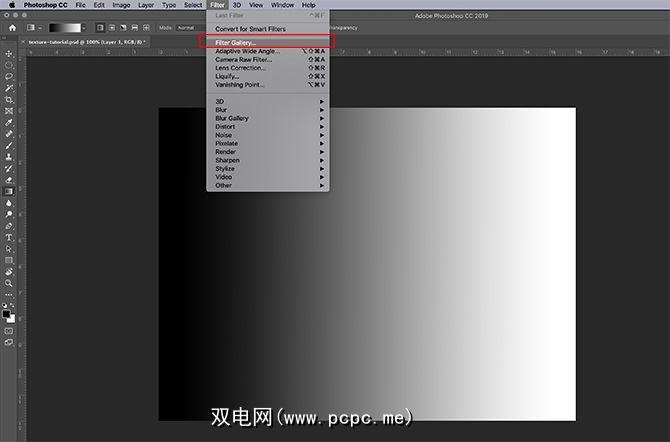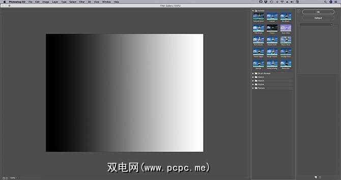 应用渐变后,请转到滤镜>滤镜库。在其中创建纹理。