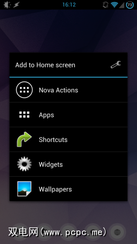 在屏幕上放置UCCW小部件就像放置其他小部件一样开始:长按应会出现以下菜单: