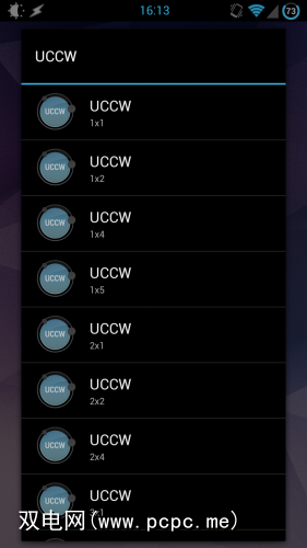 此时,您选择的窗口小部件大小并不重要,因为无论如何,大多数现代启动器中都可以调整窗口小部件的大小。选择大小后,您会发现自己在菜单中显示了到目前为止已安装的所有UCCW皮肤: