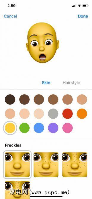您可以来回轻拂以调整创作,直到满意为止,然后点击桌面右上角的完成屏幕。您的Memoji将保存到列表中,并在创建前使用相同的 Animoji 按钮。