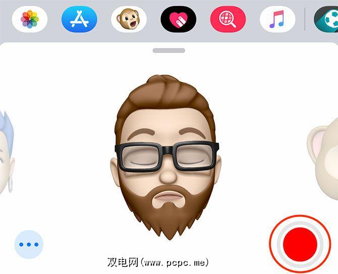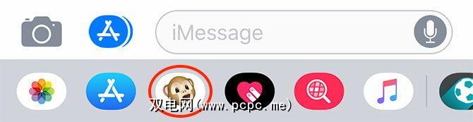 您可以在可以录制Animoji消息的位置创建Memoji:通过iMessage应用程序菜单。打开消息应用,然后点击文本框旁边的应用图标。滚动显示的图标列表,直到找到 Animoji (当然看起来像猴子)。