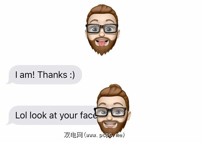 点击重复以快速克隆您的Memoji,然后对其进行 Edit 进行小的调整。尝试添加自己戴着太阳镜或其他眼镜以及其他更改的版本。请记住:这里不需要完全真实。苹果公司为了好玩而添加了此功能,因此请尝试一下,然后看看您能做什么。发送Memoji消息的方式与发送常规Animoji相同。启动消息,然后点击应用按钮。找到 Animoji “猴子"按钮,然后选择自己的头像。