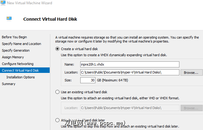 我建议将虚拟机的存储大小设置为客户机操作系统的最低规格,再加上一点额外的费用。 VHDX虚拟存储磁盘会动态扩展,因此您无需立即创建大型驱动器。当然,如果需要,可以根据需要添加任意数量的存储。