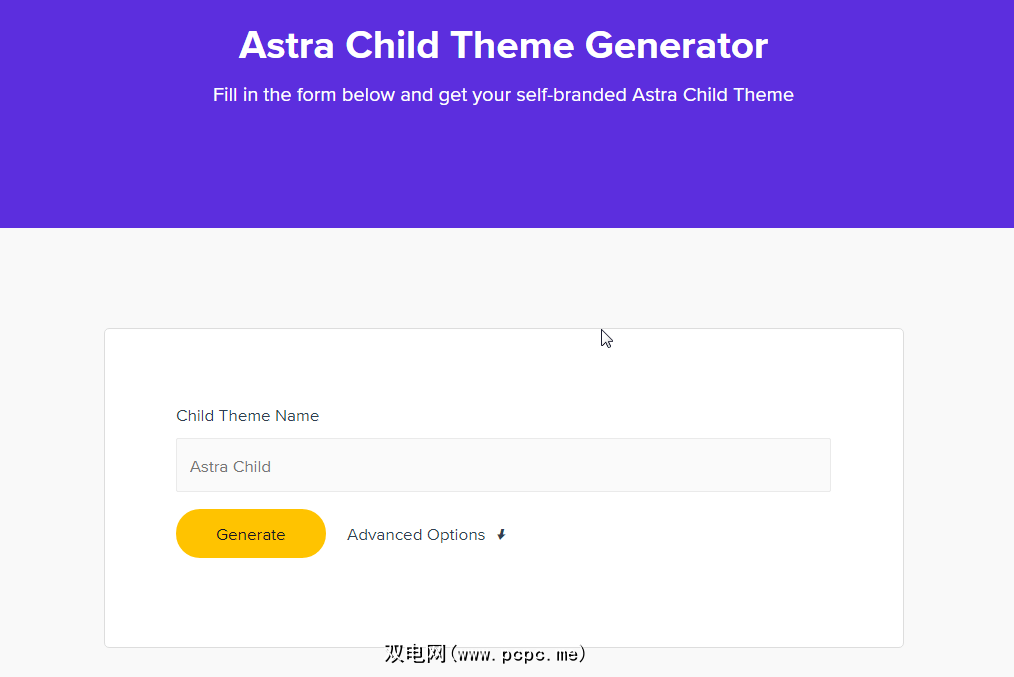 然后创建您的新子主题,只需登录Astra Child Theme Generator,输入您想要的新子主题名称,点击Generate,就可以了!
