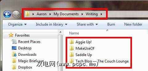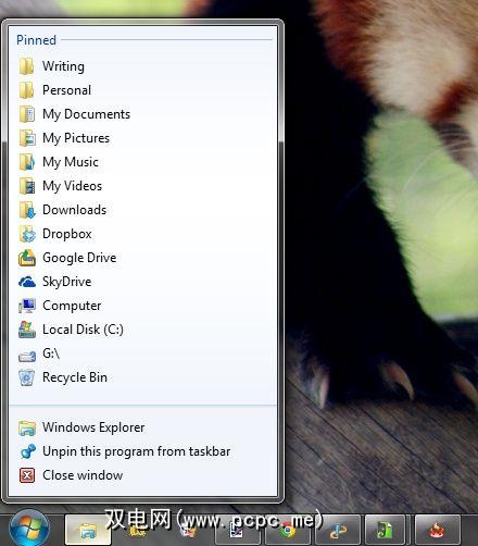 Windows 7具有一个很棒的功能,称为“ 跳转列表",它使您可以将文件夹固定到Windows资源管理器弹出图标附近。任务栏上的开始按钮。您可以通过右键单击然后选择要打开的文件夹来访问它。要添加新文件夹,只需抓住它并将其拖放到任务栏中的Windows资源管理器图标上即可。然后,您可以按照需要的任何方式移动文件夹。