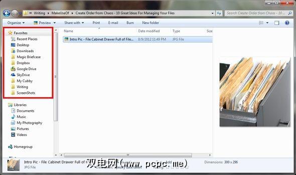Windows资源管理器中的另一个功能是可以将文件夹添加到“ 收藏夹< / em>。如果您访问的是很多文件夹,但不属于Windows称为“ 收藏夹"的设置文件夹的一部分,则可以将文件夹拖放到该部分中。注意不要将文件夹拖到收藏夹中已经存在的另一个文件夹中。