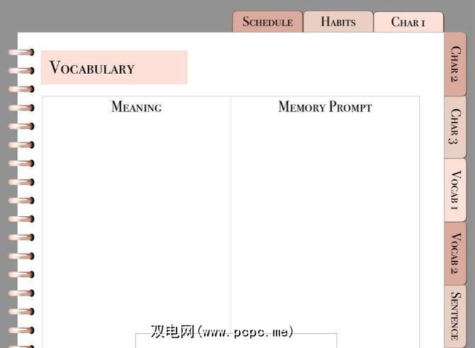 广泛地说,威尔金森将笔记本分为时间表,习惯,和设置模式的目标,以及用于练习的工作表。例如,词汇表将包含一个新单词,其含义,其记忆提示,同义词和反义词以及如何在句子中使用的空格。认真填写所有内容以将其提交到内存。