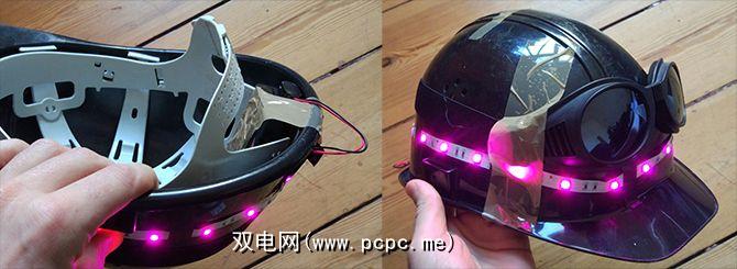 使用便宜的SMD 5050 LED灯带和一块电池将它们放在一起摇篮和许多胶带,这个头盔很粗糙,也很简单。紫光是通过将红色和蓝色GND条焊接在一起而获得的,其中12V +接线片直接连接到电池座。通过安装和拆卸电池可以打开和关闭电池。