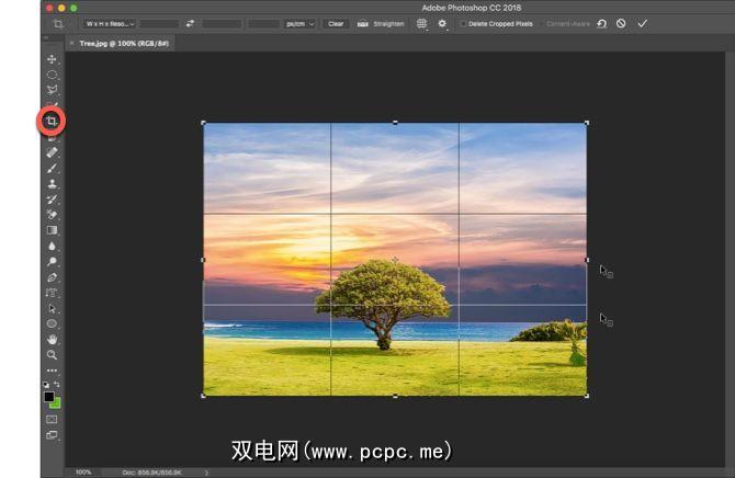 注意:在选项栏中,您可以启用删除裁剪的像素选项以删除裁剪区域之外的所有像素。这些像素丢失,无法用于将来的调整。另外,当您想要保留像素以进行进一步调整时,不要选择该选项。